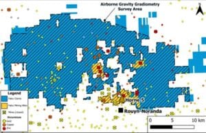 The Survey will be operated by Xcalibur MPH (Canada) Ltd. using their Falcon system known as FALCON fixed-wing AGG with a high-density grid of 100-meter line spacing providing exceptional resolution for detailed mapping. The Survey will be flown over 280 square kilometers across the majority of the Corporation’s land package, including the Noranda Camp, which includes 13 former mining sites for gold and base metals (see Figure below).